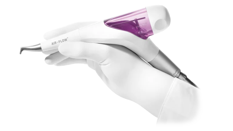 Аппарат Air Flow является отличным методом удаления зубного налёта. Эта процедура осуществляется с помощью стоматологического прибора, который подаёт на зубы поток воды под давлением, смешанный с воздухом и мелкодисперсным шлифовальным порошком (стоматологический бикарбонат натрия или кальция). AirFlow очень хорошо очищает зубы от биоплёнки и пигментированного зубного налёта, который невозможно убрать обычной щёткой, образовавшегося из-за курения или употребления окрашенных напитков и пищи.