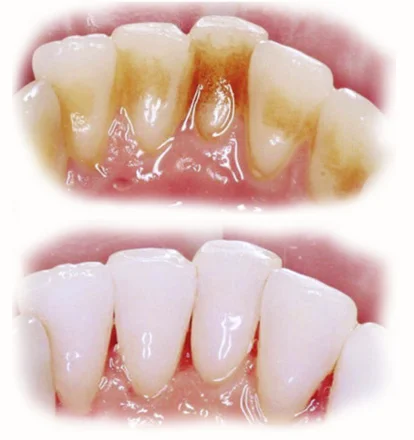Современный и продуктивный способ удаления зубного камня, также известный как чистка зубов ультразвуком. Эта процедура не вредит эмали. В процессе стоматологической чистки зубов насадка скалера генерирует высокочастотные вибрации, которые сбивают твёрдые отложения. Зубной камень — это затвердевший налёт. Остатки пищи формируют липкий осадок, который накапливается, уплотняется и цементируется вдоль линии десны. При недостаточной ежедневной чистке зубов формирование зубного камня проходит быстрее. Однако даже при хорошей и систематической гигиене, налёт со временем оседает в зонах, которые сложно вычистить даже электрической щёткой.